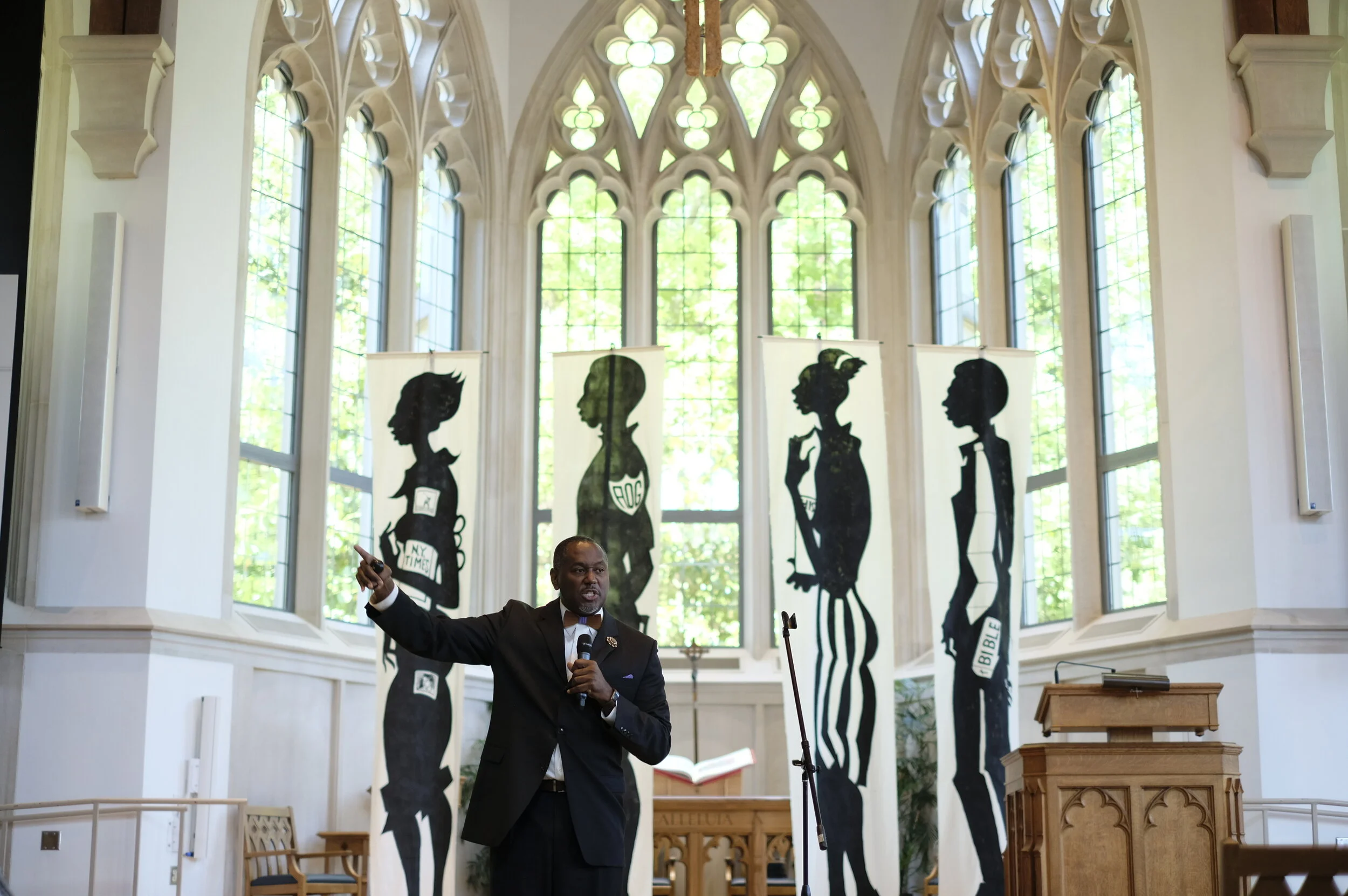 Artist Steve Prince took participants on a visual arts journey through history utilizing the cathartic nature of the New Orleans jazz Funerary tradition as a philosophy for grappling with issues circulating around faith, race, and social justice. This seminar featured a performance by choreographer and dancer, Professor Leah Glenn, of her original work “The Youngest of Nine.”